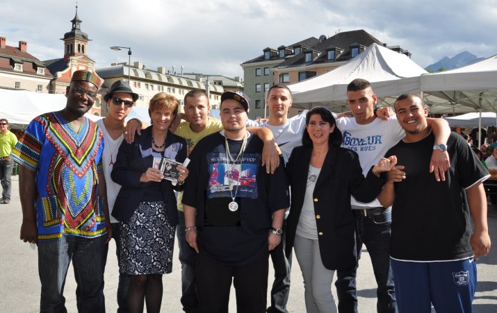 Bei strahlendem Sonnenschein fand das erste Revival des großen Public Viewing Festes anlässlich der Fußball WM dann einen runden Abschluss: Kulturstadträtin Univ.-Prof. Dr. Patrizia Moser las am Vormittag integrative Texte und eine Geschichte im Rahmen des „Weltfrühstückes“. Nach einem Konzert der Innsbrucker HipHop-Gruppe Kingsbrook am Nachmittag übergaben die jungen Künstler der Bürgermeisterin um 17.00 Uhr ein ihr gewidmetes Lied.