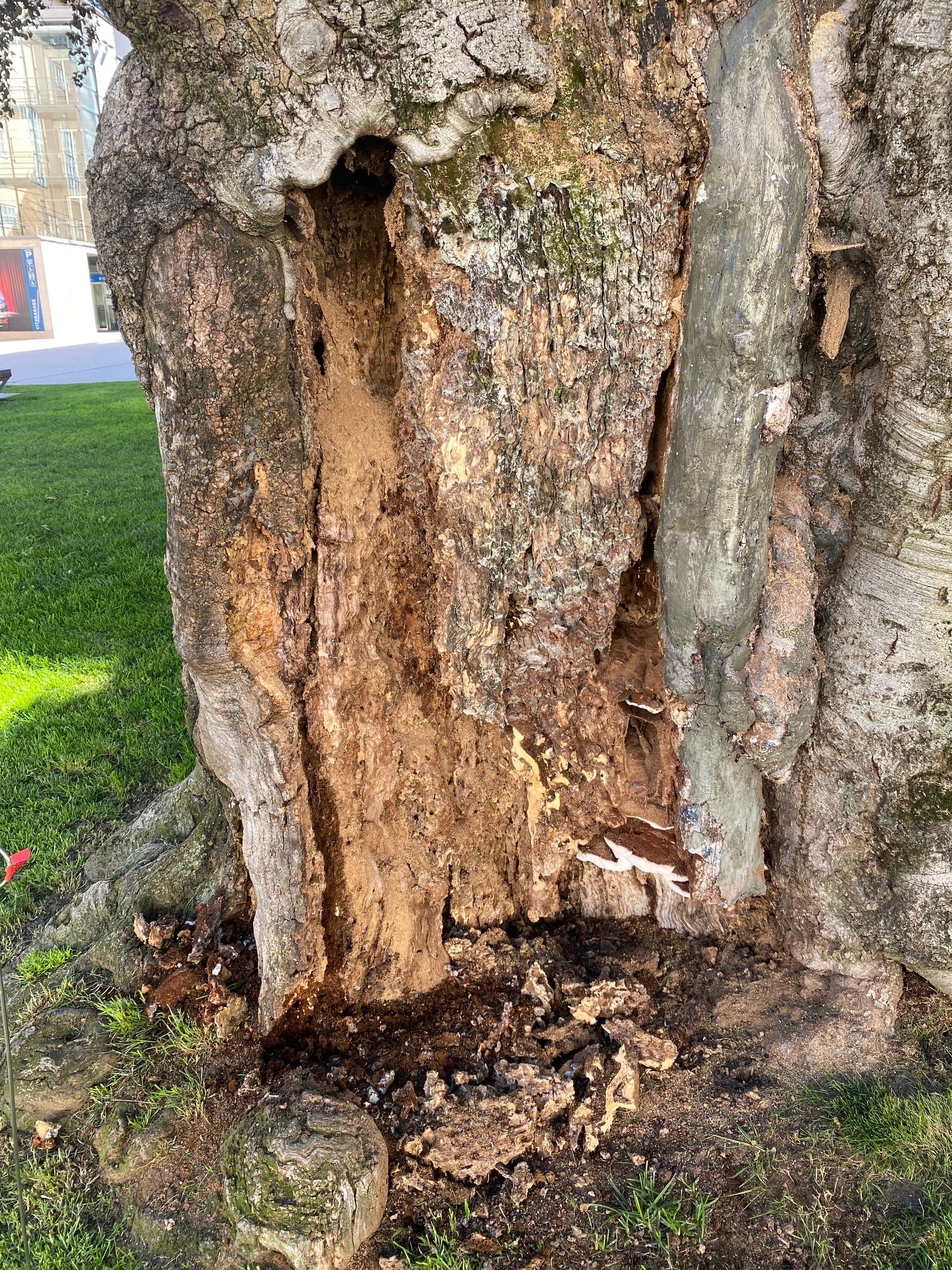 Dadurch hat sich der mangelhafte Gesundheitszustand laut Einschätzung der ExpertInnen dramatisch verschlechtert. Festgestellt wurden neben dem rasant fortschreitenden schweren Pilzbefall (Lackporling) auch eine enorme Zunahme von Totholz in der Krone sowie ein starker Holzausbruch im Stammbereich, alles Folgen des Pilzbefalls. Die GutachterInnen geben daher eine umgehende Entfernung des Baumes vor. Die Landesumweltanwaltschaft schließt sich nach einem Lokalaugenschein mit einem externen Gutachter dieser Maßnahme an.