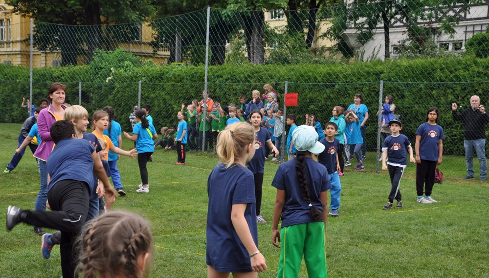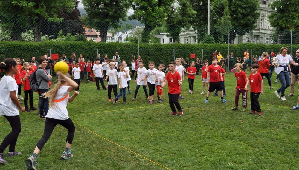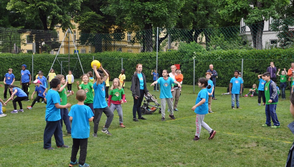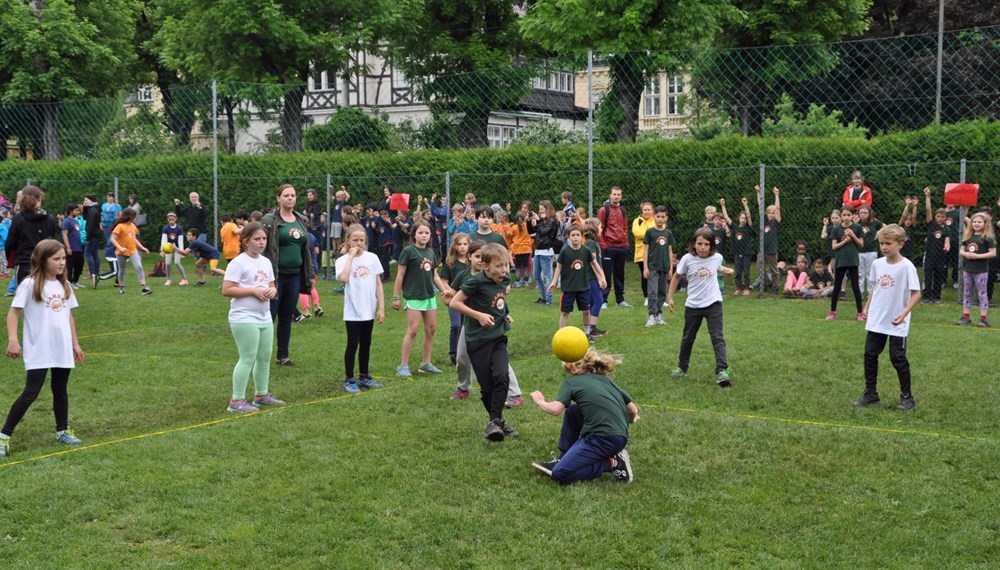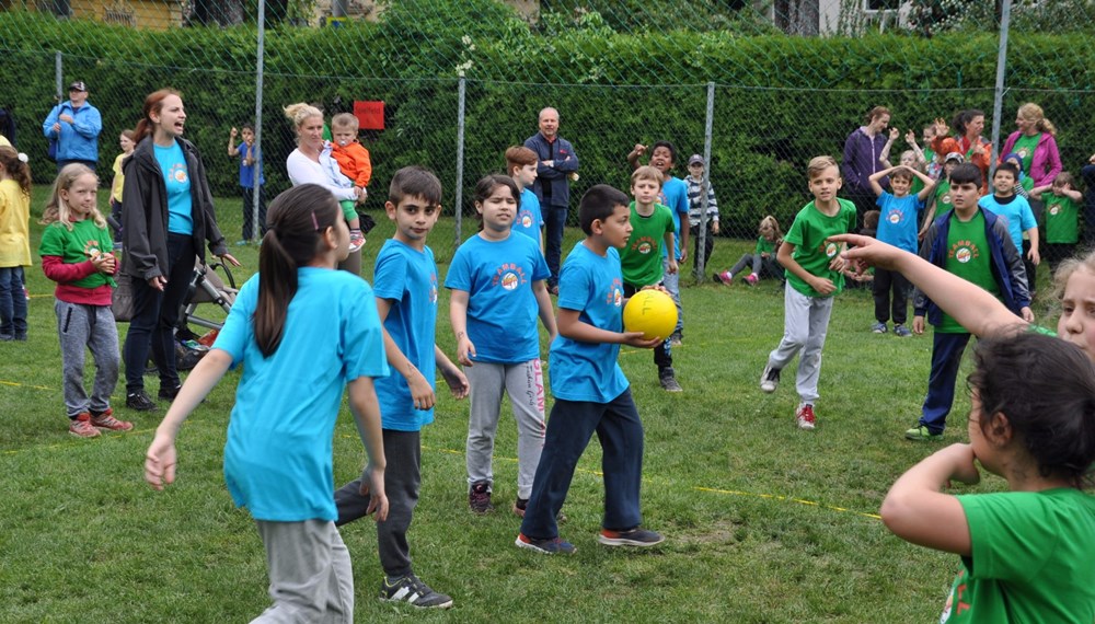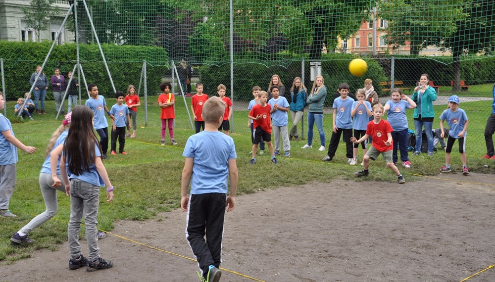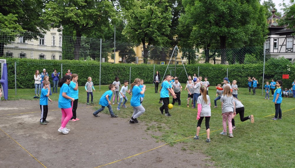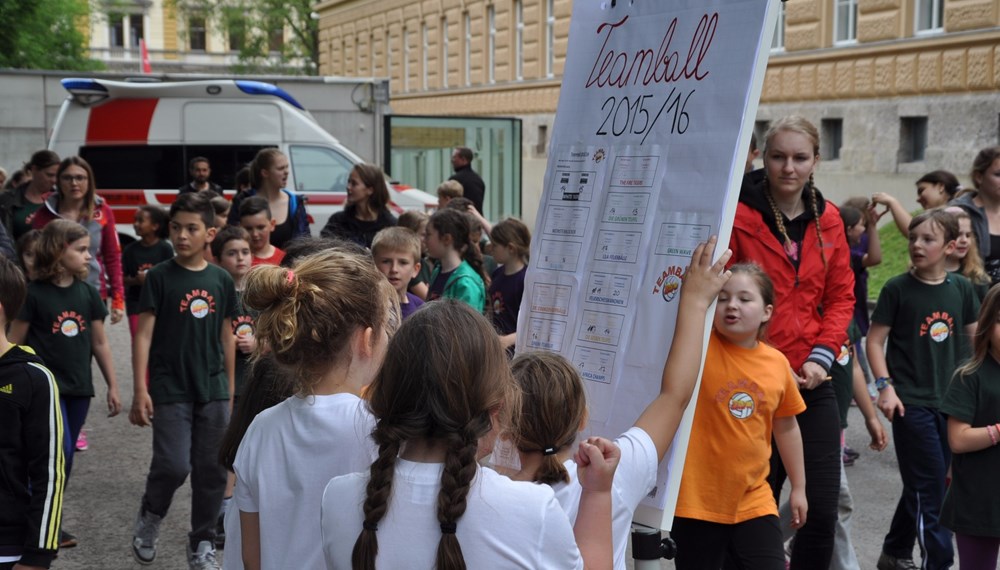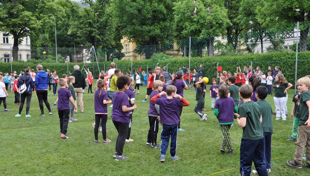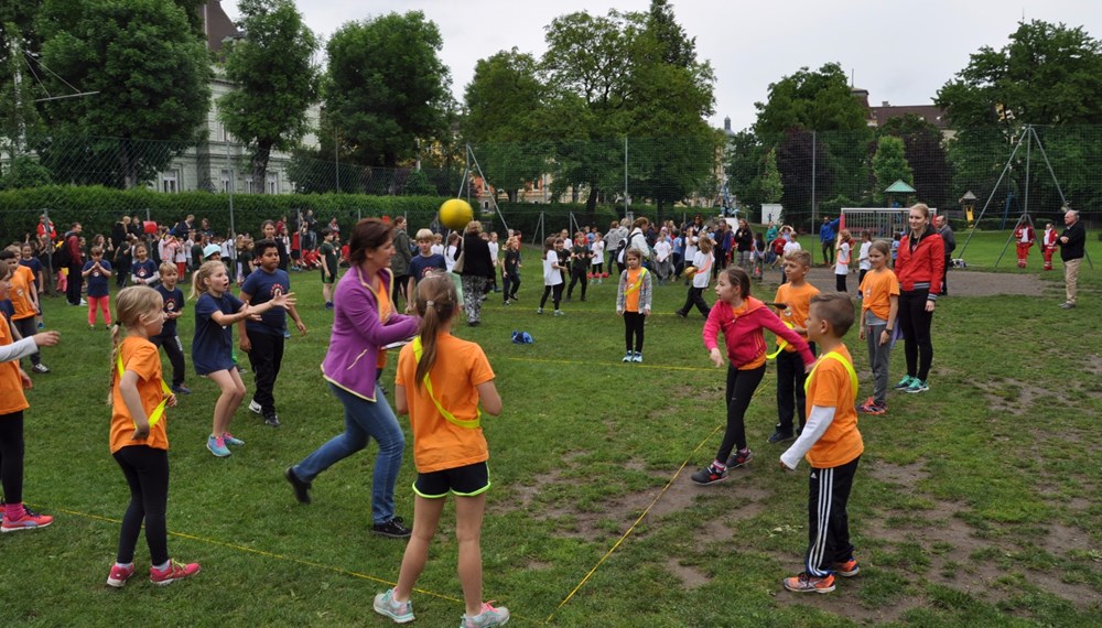 26 dritte Klassen aus 14 Innsbrucker Volksschulen (Angergasse, Hötting, Pradl-Leitgeb I, Kettenbrücke, Igls-Vill, Sieglanger, Arzl, Allerheiligen, Altwilten, Dreiheiligen, Mühlau, Amras, Hötting-West und Saggen) wurden schon im Herbst des vergangenen Jahres zu Partnerklassen zusammengelost. Sie besuchten sich im Laufe dieses Schuljahres gegenseitig in den jeweiligen Schulen und spielten gemeinsam Teamball. Insgesamt nahmen 445 SchülerInnen an dem abschließenden Turnier teil – so viele waren es noch nie.