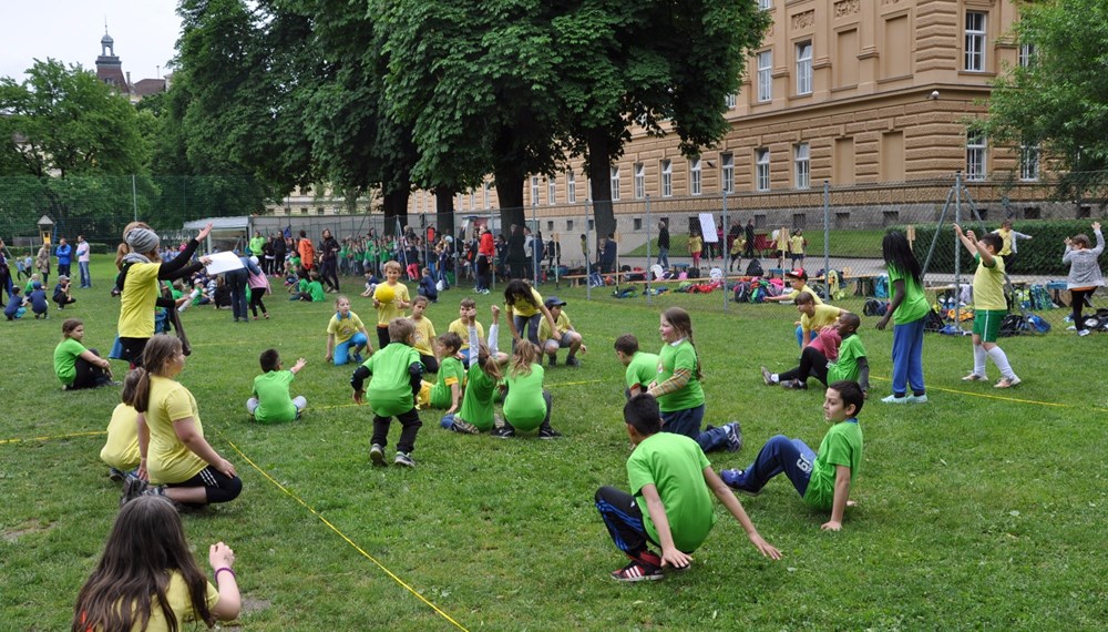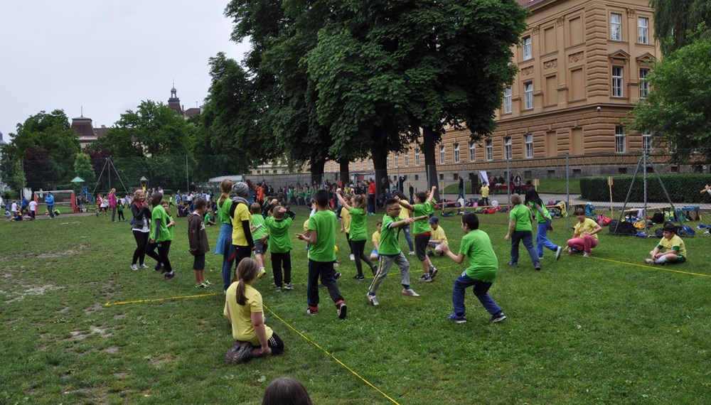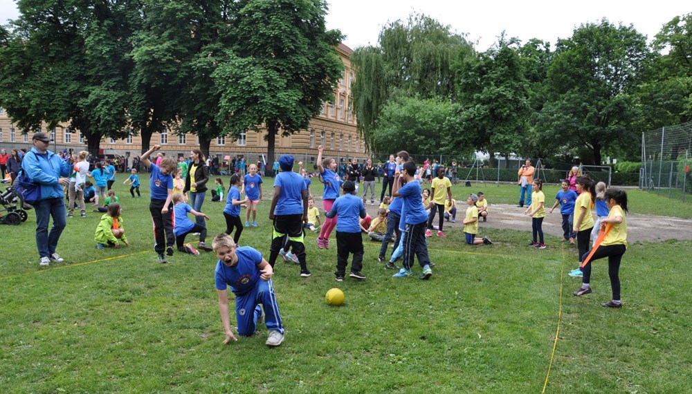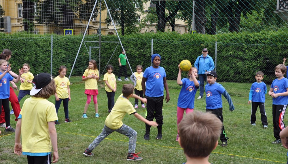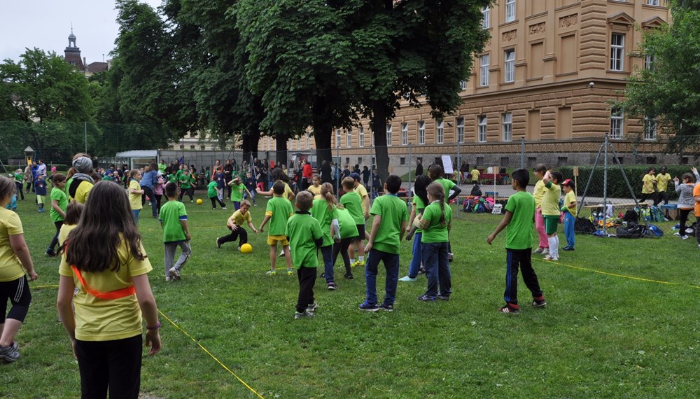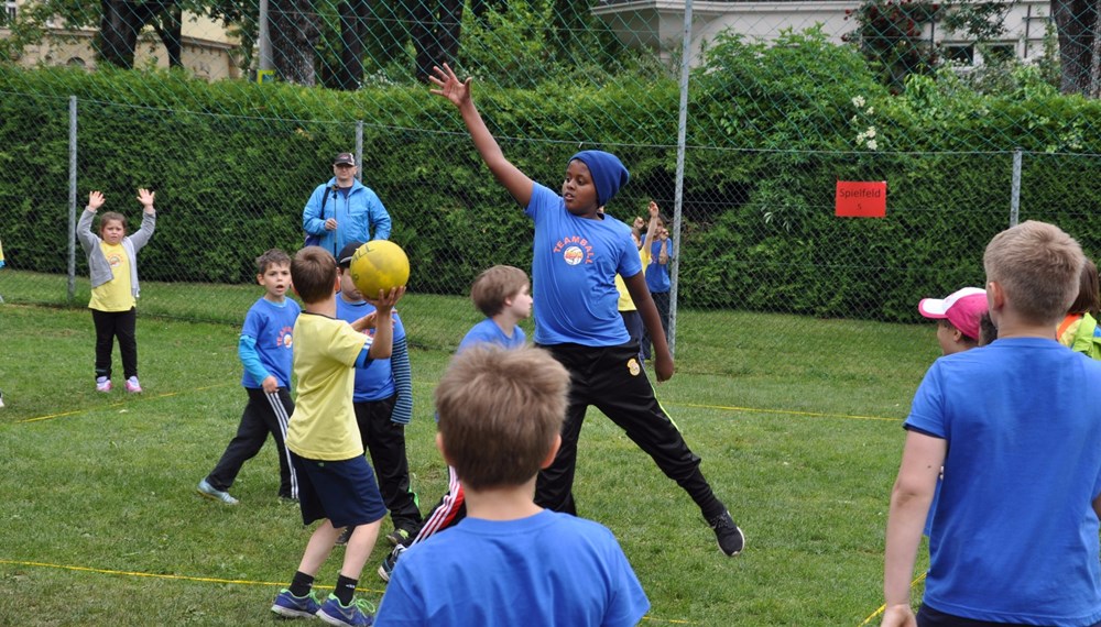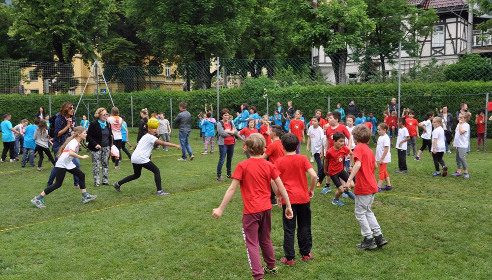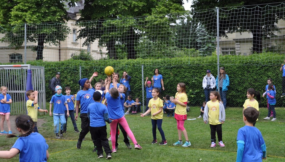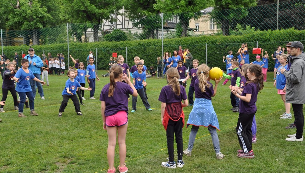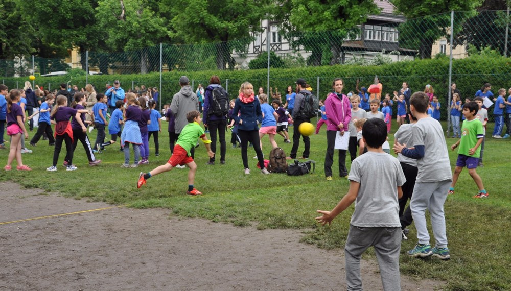 26 dritte Klassen aus 14 Innsbrucker Volksschulen (Angergasse, Hötting, Pradl-Leitgeb I, Kettenbrücke, Igls-Vill, Sieglanger, Arzl, Allerheiligen, Altwilten, Dreiheiligen, Mühlau, Amras, Hötting-West und Saggen) wurden schon im Herbst des vergangenen Jahres zu Partnerklassen zusammengelost. Sie besuchten sich im Laufe dieses Schuljahres gegenseitig in den jeweiligen Schulen und spielten gemeinsam Teamball. Insgesamt nahmen 445 SchülerInnen an dem abschließenden Turnier teil – so viele waren es noch nie.