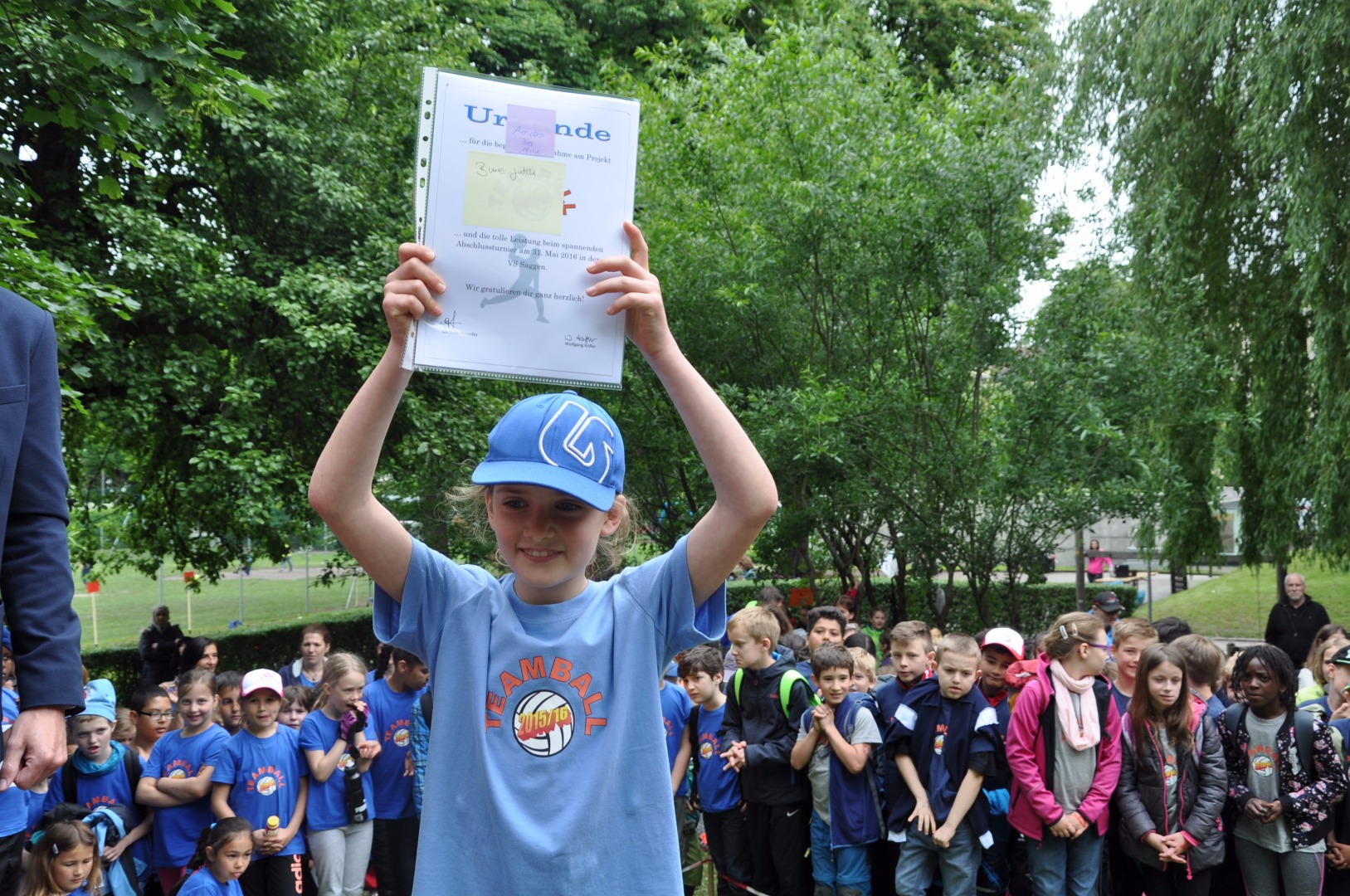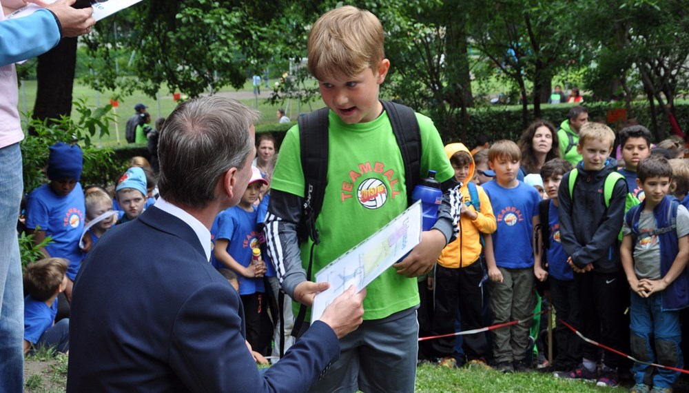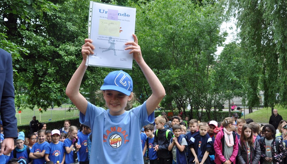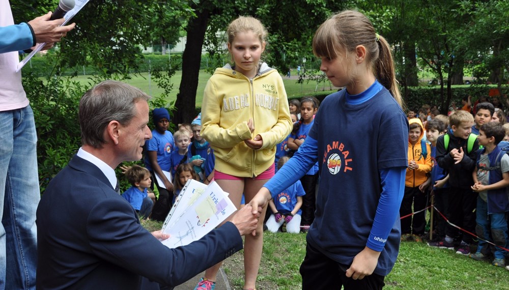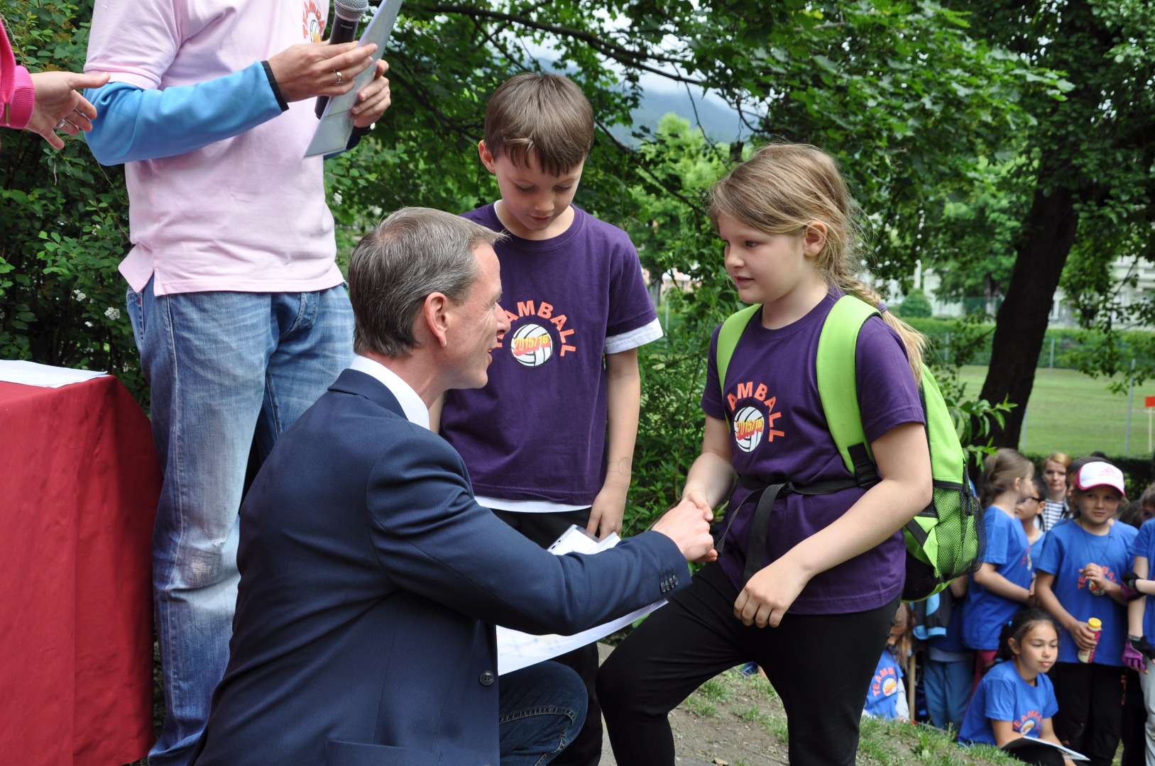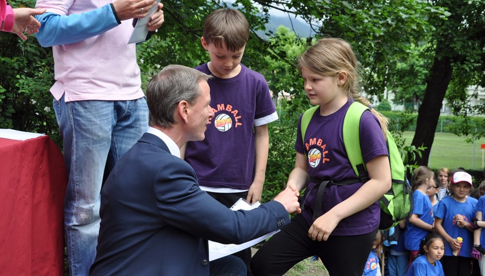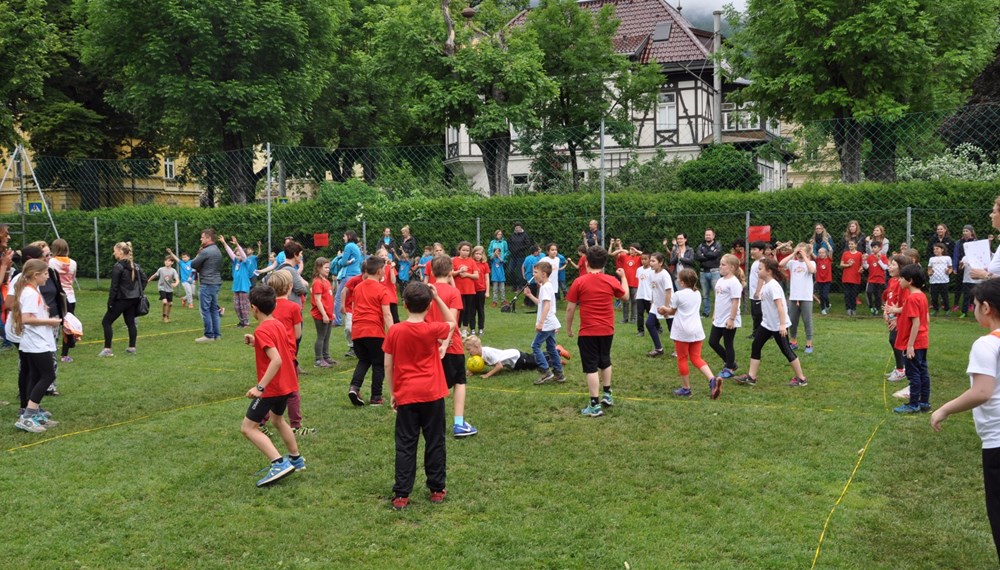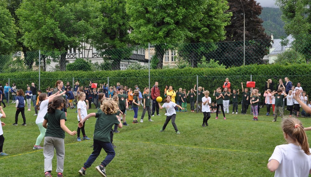 Mit einem Rekord an teilnehmenden Klassen fand Ende Mai das bereits sechste Abschlussturnier des schulübergreifenden Jahresprojekts „Teamball“ im Schulgarten der Volksschule Saggen statt. Bei spannenden Matches konnte sich die „White Tigers“ (VS Mühlau 3b/VS Sieglanger 3a) am Ende den Turniersieg knapp vor den „Monsterblockern“ (VS Angergasse 3b/VS Allerheiligen 3a) und den „Feuerschießkanonen“ (VS Angergasse 3d/VS Kettenbrücke 3a) sichern. Vizebürgermeister Christoph Kaufmann überreichte die Siegerpokale an die glücklichen GewinnerInnen und gratulierte allen Kindern: „An Innsbrucks Schulen wird ein besonderer Fokus auf Bewegung gelegt. Die Freude am gemeinsamen Spiel und am Sport zu sehen ist schön. Die Klassen sind allesamt mit Begeisterung dabei.“