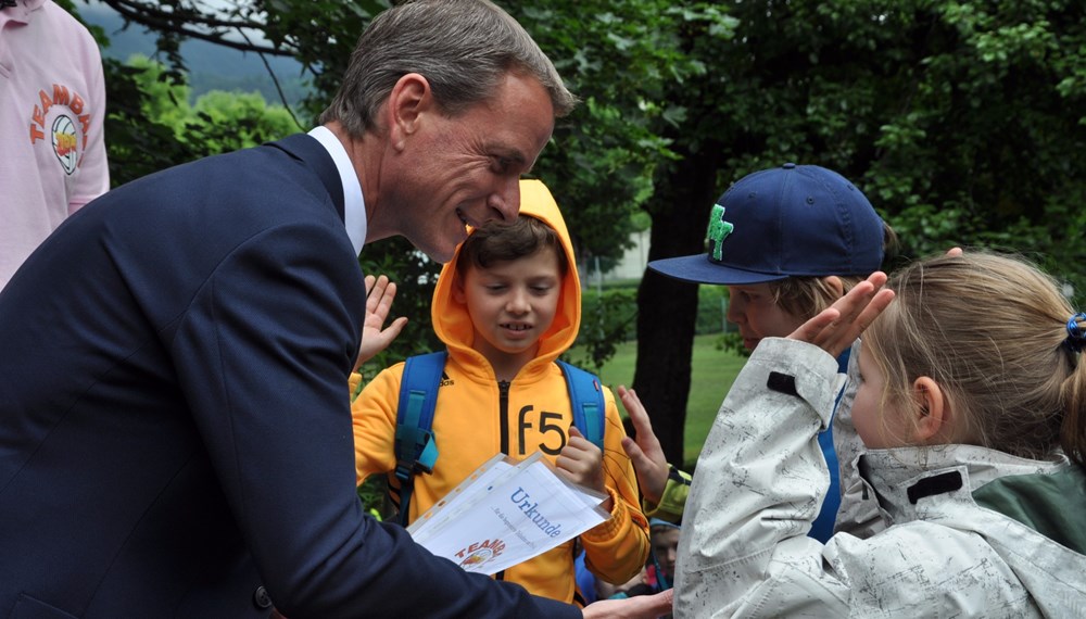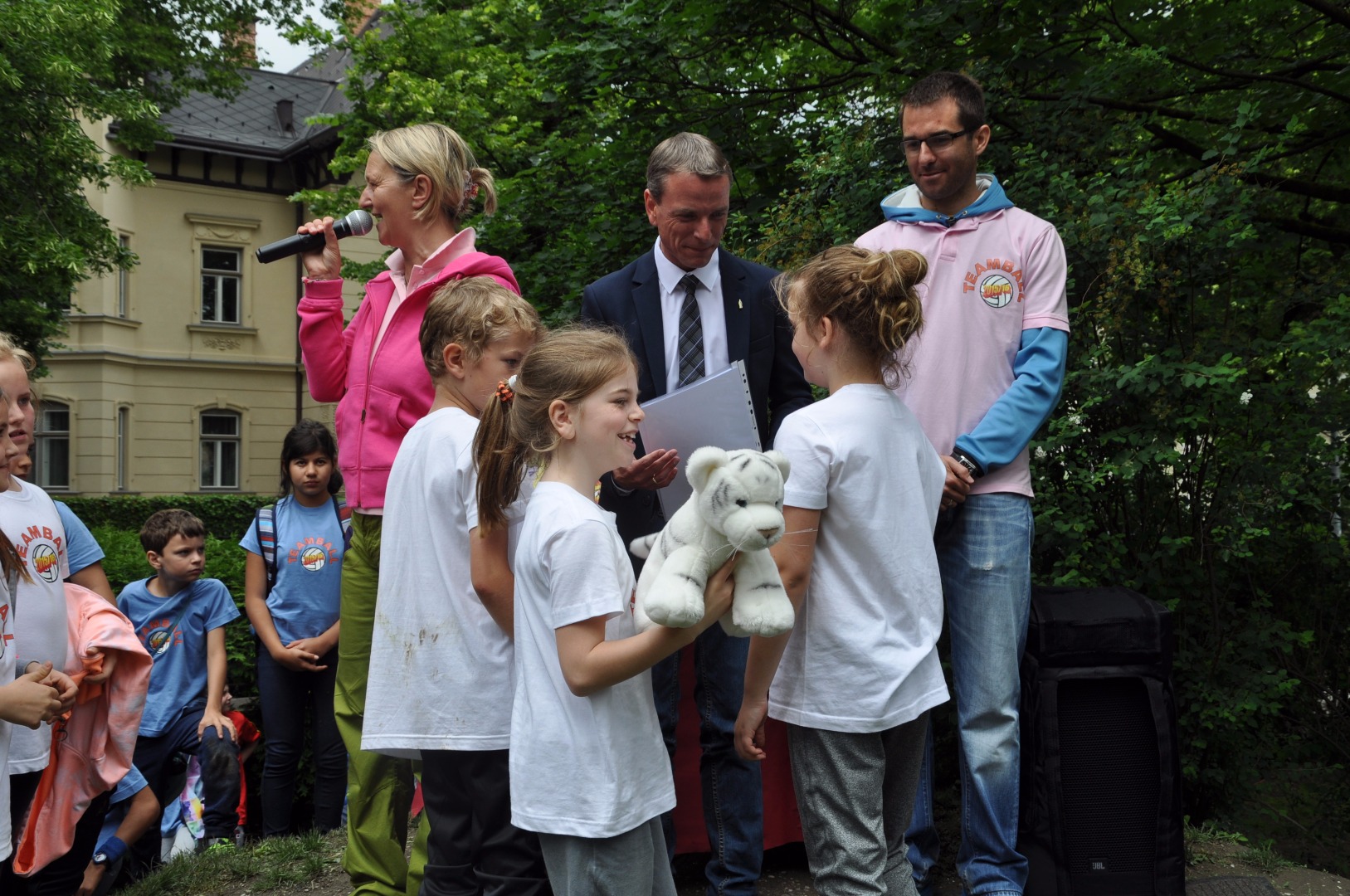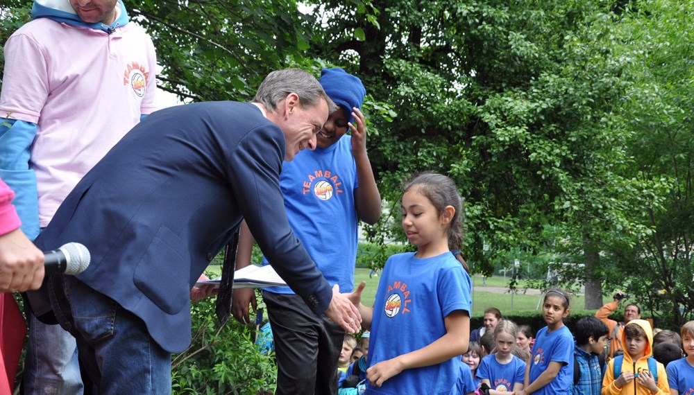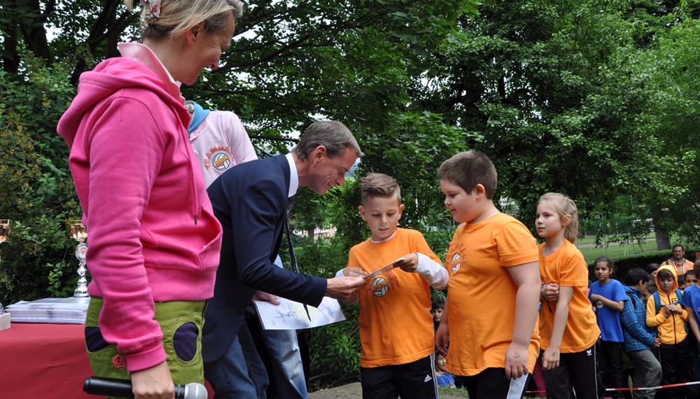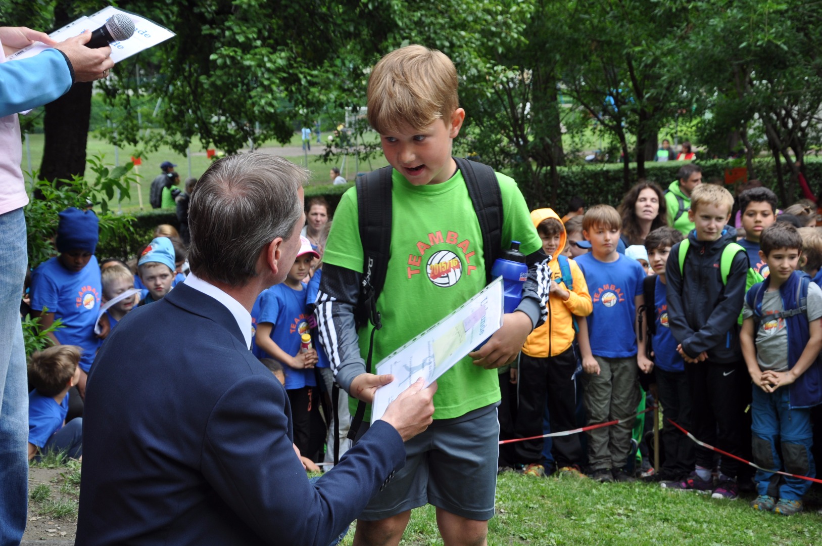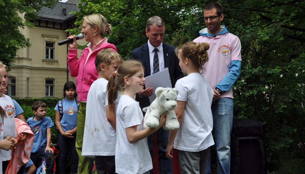 Mit einem Rekord an teilnehmenden Klassen fand Ende Mai das bereits sechste Abschlussturnier des schulübergreifenden Jahresprojekts „Teamball“ im Schulgarten der Volksschule Saggen statt. Bei spannenden Matches konnte sich die „White Tigers“ (VS Mühlau 3b/VS Sieglanger 3a) am Ende den Turniersieg knapp vor den „Monsterblockern“ (VS Angergasse 3b/VS Allerheiligen 3a) und den „Feuerschießkanonen“ (VS Angergasse 3d/VS Kettenbrücke 3a) sichern. Vizebürgermeister Christoph Kaufmann überreichte die Siegerpokale an die glücklichen GewinnerInnen und gratulierte allen Kindern: „An Innsbrucks Schulen wird ein besonderer Fokus auf Bewegung gelegt. Die Freude am gemeinsamen Spiel und am Sport zu sehen ist schön. Die Klassen sind allesamt mit Begeisterung dabei.“