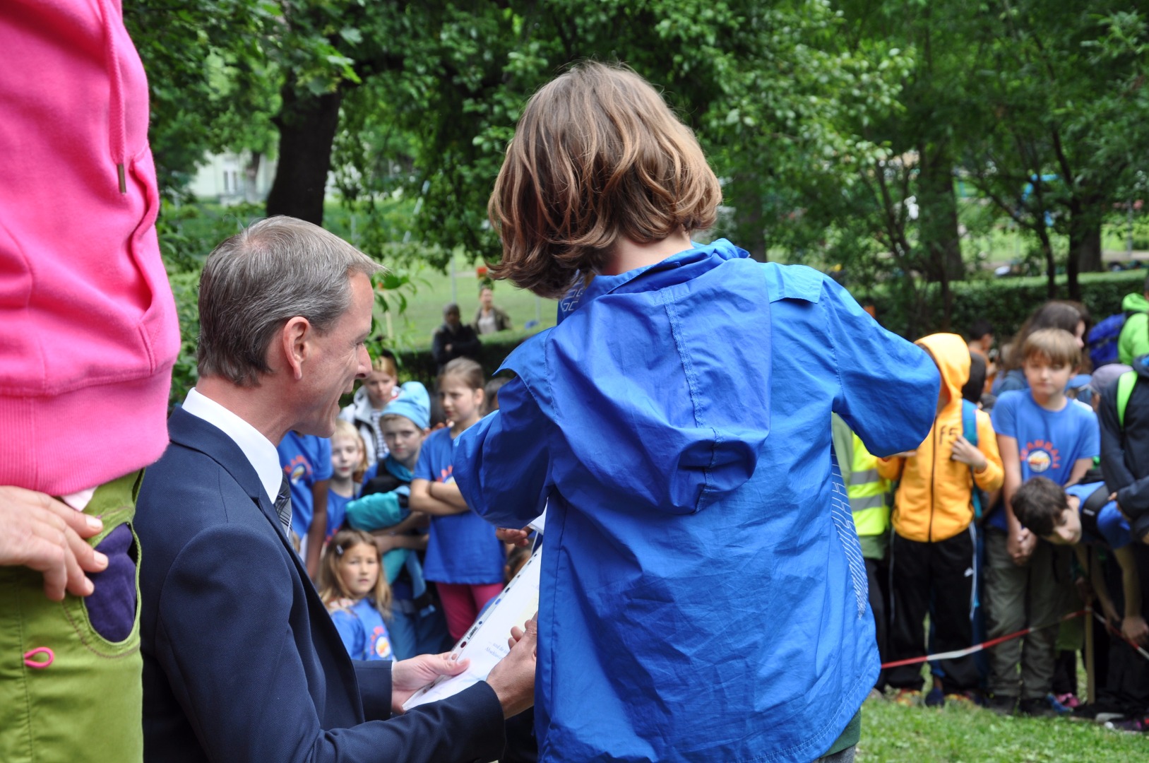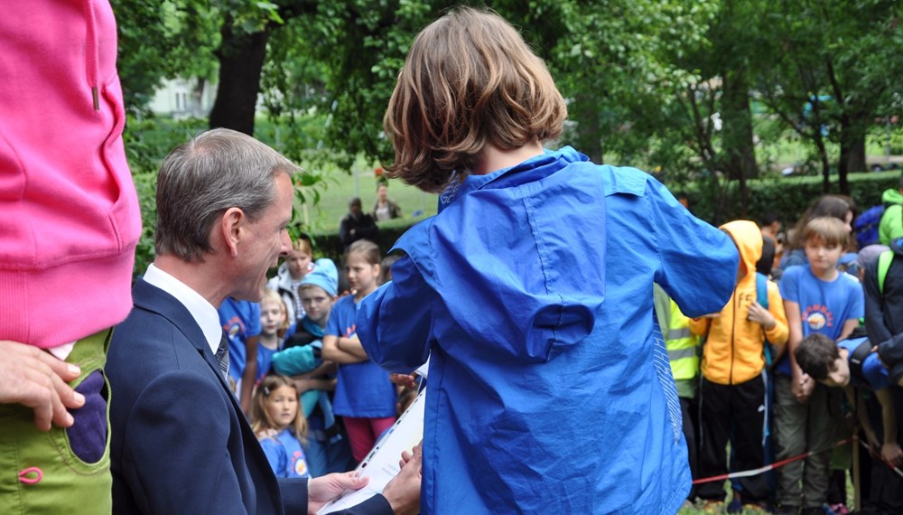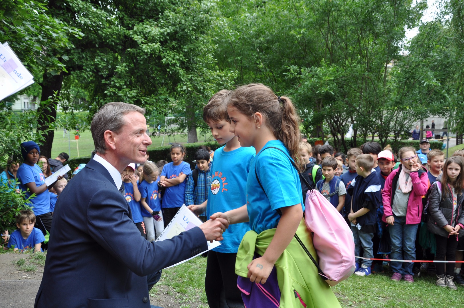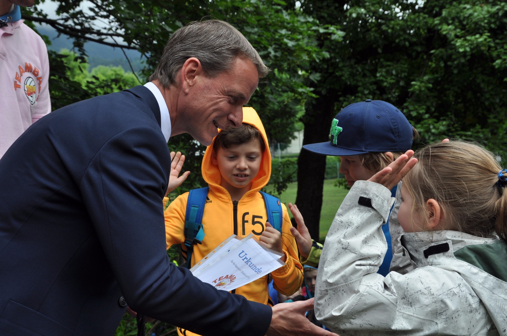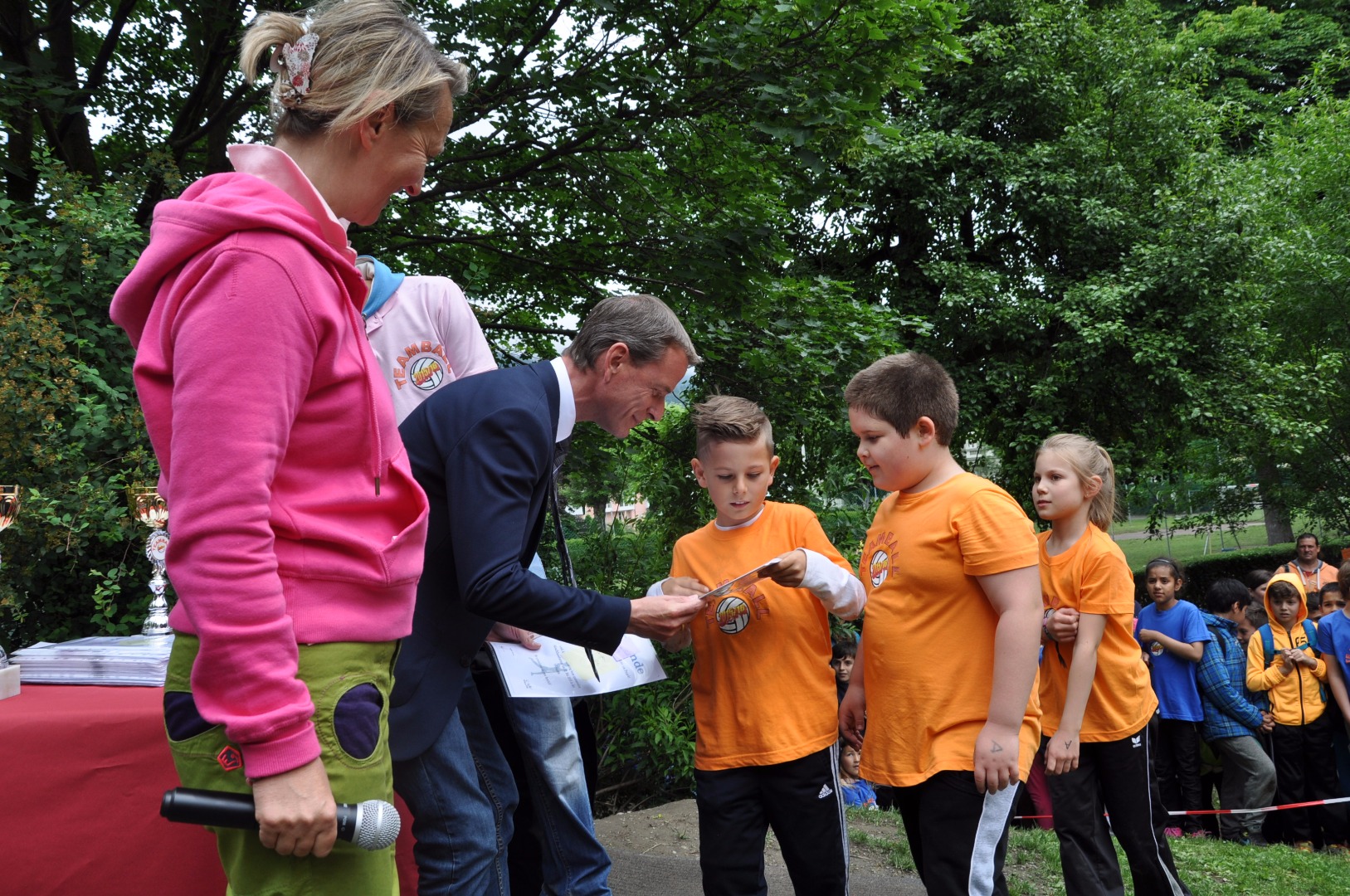 Mit einem Rekord an teilnehmenden Klassen fand Ende Mai das bereits sechste Abschlussturnier des schulübergreifenden Jahresprojekts „Teamball“ im Schulgarten der Volksschule Saggen statt. Bei spannenden Matches konnte sich die „White Tigers“ (VS Mühlau 3b/VS Sieglanger 3a) am Ende den Turniersieg knapp vor den „Monsterblockern“ (VS Angergasse 3b/VS Allerheiligen 3a) und den „Feuerschießkanonen“ (VS Angergasse 3d/VS Kettenbrücke 3a) sichern. Vizebürgermeister Christoph Kaufmann überreichte die Siegerpokale an die glücklichen GewinnerInnen und gratulierte allen Kindern: „An Innsbrucks Schulen wird ein besonderer Fokus auf Bewegung gelegt. Die Freude am gemeinsamen Spiel und am Sport zu sehen ist schön. Die Klassen sind allesamt mit Begeisterung dabei.“