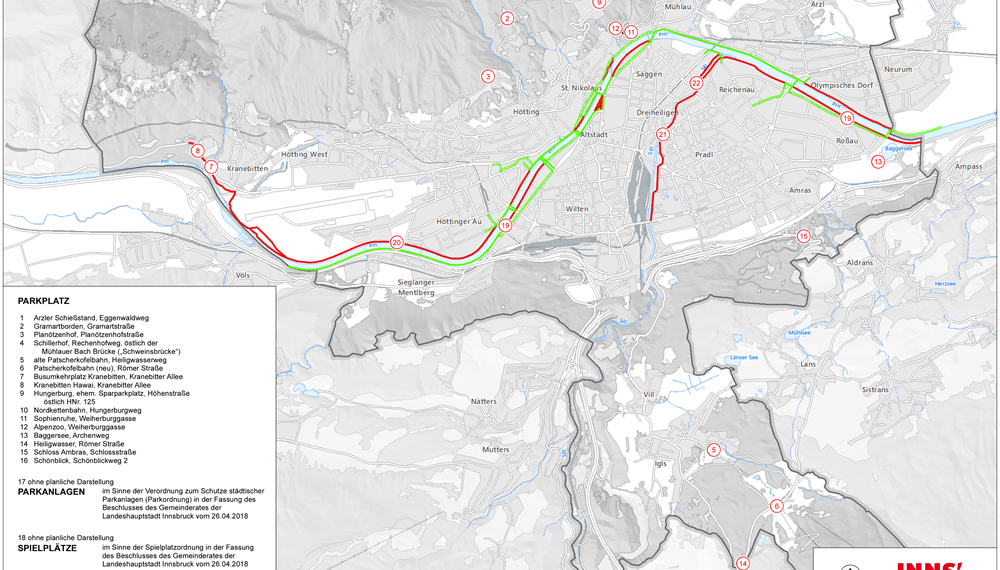 Zur Verhinderung der weiteren Verbreitung von Covid-19 wurde das Befahren und Betreten der Innpromenaden sowie des Sillufers untersagt. Nun werden die Sperren innerhalb der Landeshauptstadt für den nicht motorisierten Verkehr an neuralgischen Punkten gelockert, um der Bevölkerung den gesicherten Weg zur Grundversorgung und zur Arbeit zu ermöglichen, aber nicht für sportliche Aktivitäten.