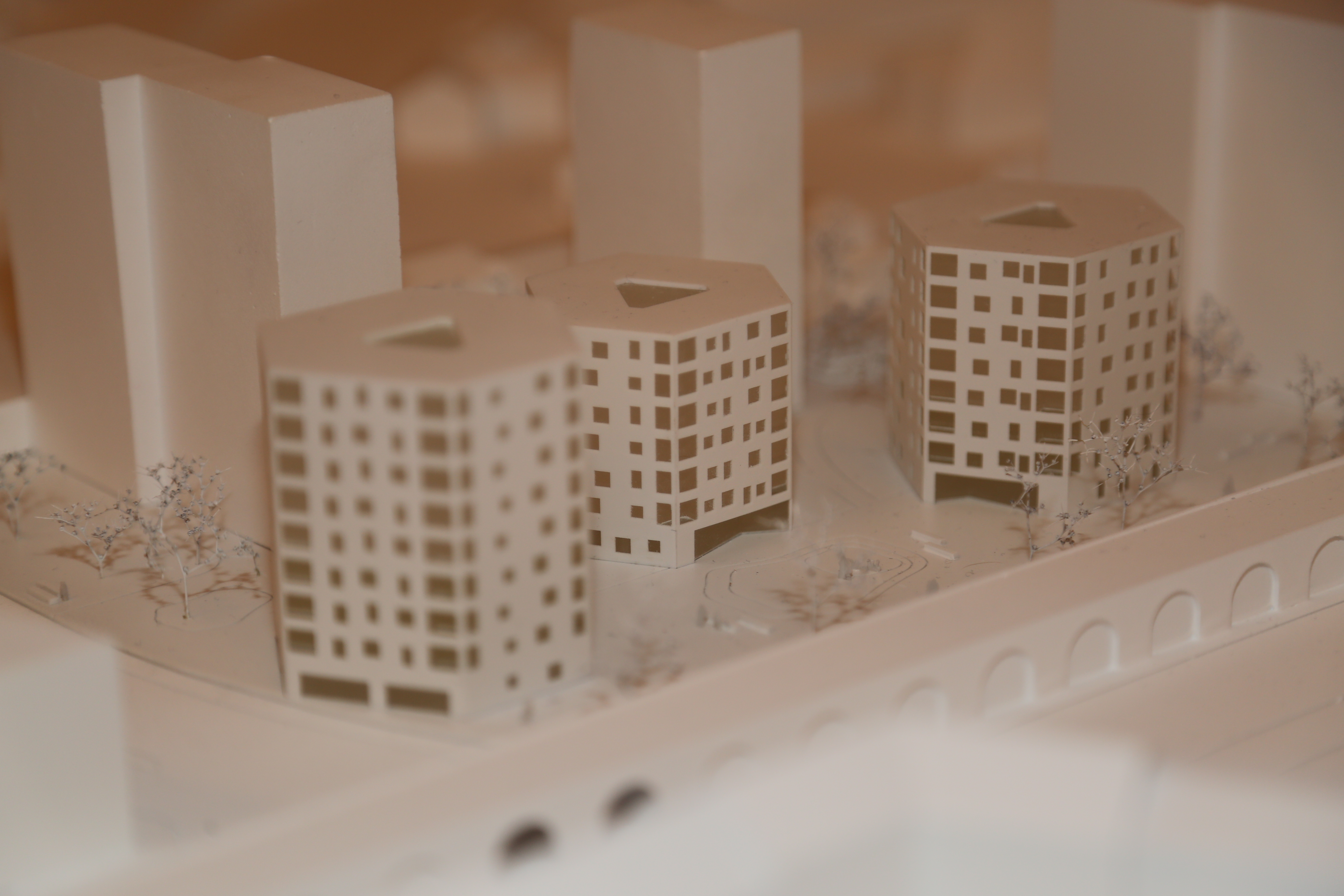 Die Jury lobt insbesondere die „andersartige Vollendung“ des Bauprojektes als unverwechselbar und identitätsstiftend für den Bauplatz. Dem Projekt liegt die Idee höchster Kompaktheit zugrunde: Durch neue, radial angelegte Grundrisstypologien wird Wohnraum geschaffen, der sich zum Licht hin öffnet. Dabei bietet jede Wohnung über Eck gelegenen Loggien und einer Belichtung von zwei Seiten. Auch in Hinblick auf die Freiraumgestaltung überzeugt das Siegerkonzept: Die Durchlässigkeit von Neubau und Bestand bleibt erhalten. Ein im Norden des Grundstücks geplanter Spielplatz und eine beruhigte Grünanlage im Süden bieten Spiel- und Erholungsraum gleichermaßen.